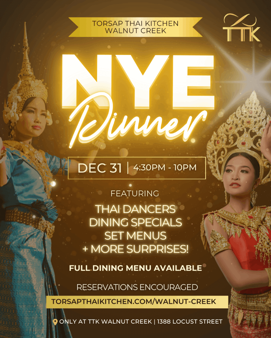 Get your New Year’s Eve celebrations started in style with a very special New Year’s Eve dinner at Torsap Thai Kitchen Walnut Creek!