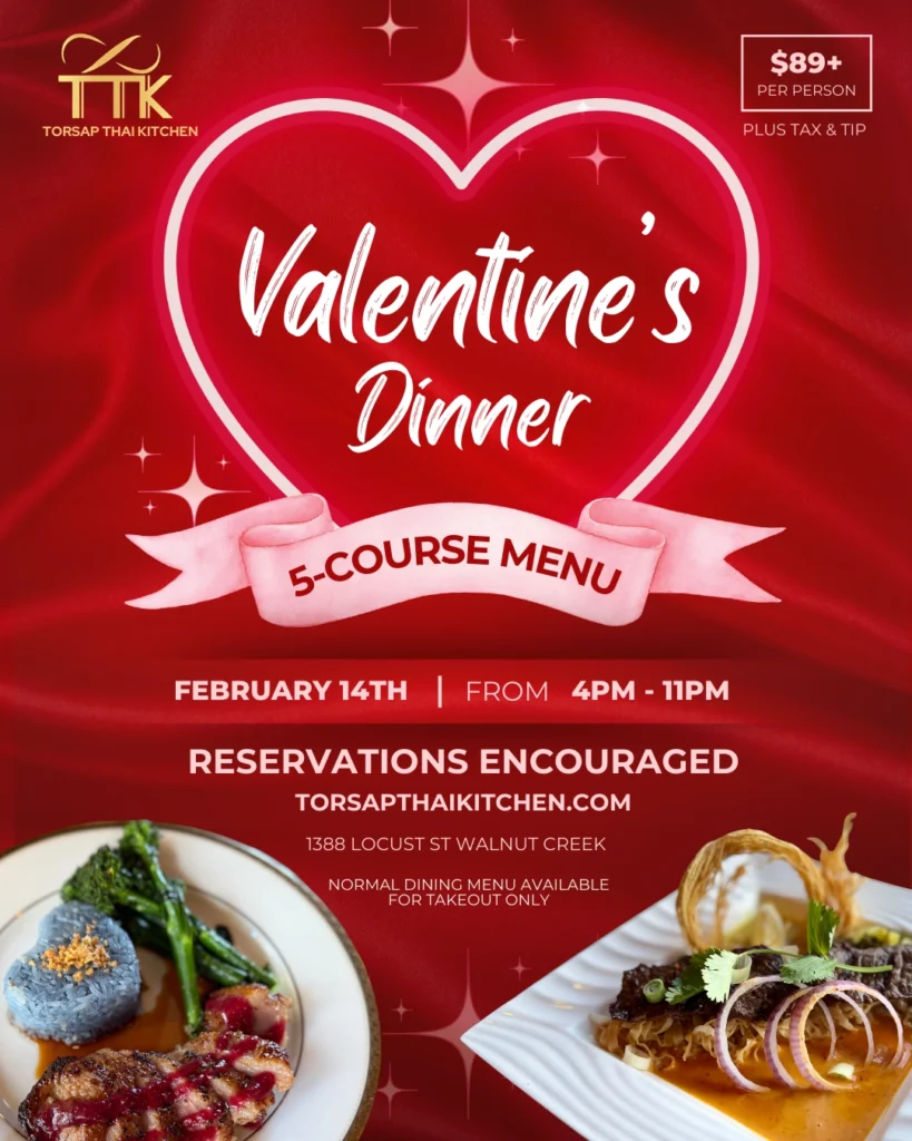 This Valentine’s Day, let us take you on a romantic journey through Thai flavors with a specially curated 5-course prix fixe menu, designed for an unforgettable evening with someone special.